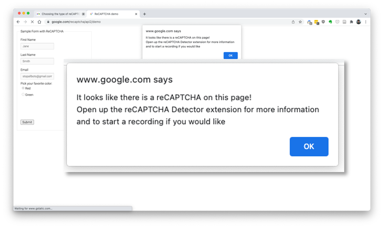 I have configured my installation of the Chrome extension to upload files and submit form data via HTTP to a Google Cloud Function. This function parses the data—saving the uploaded files to a Google Cloud Storage Bucket and writing the data to a database hosted in MongoDB Atlas. Once the data is in the database, it is displayed for the web in a Ruby on Rails App (the website that you're looking at right now)