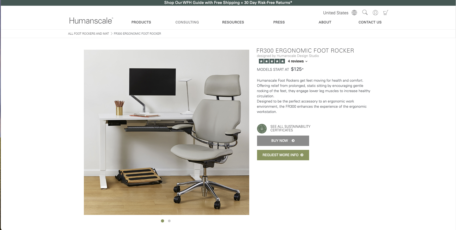 Website url: https://www.humanscale.com/products/ergonomic-foot-rests/FR300-ergonomic-foot-rocker
