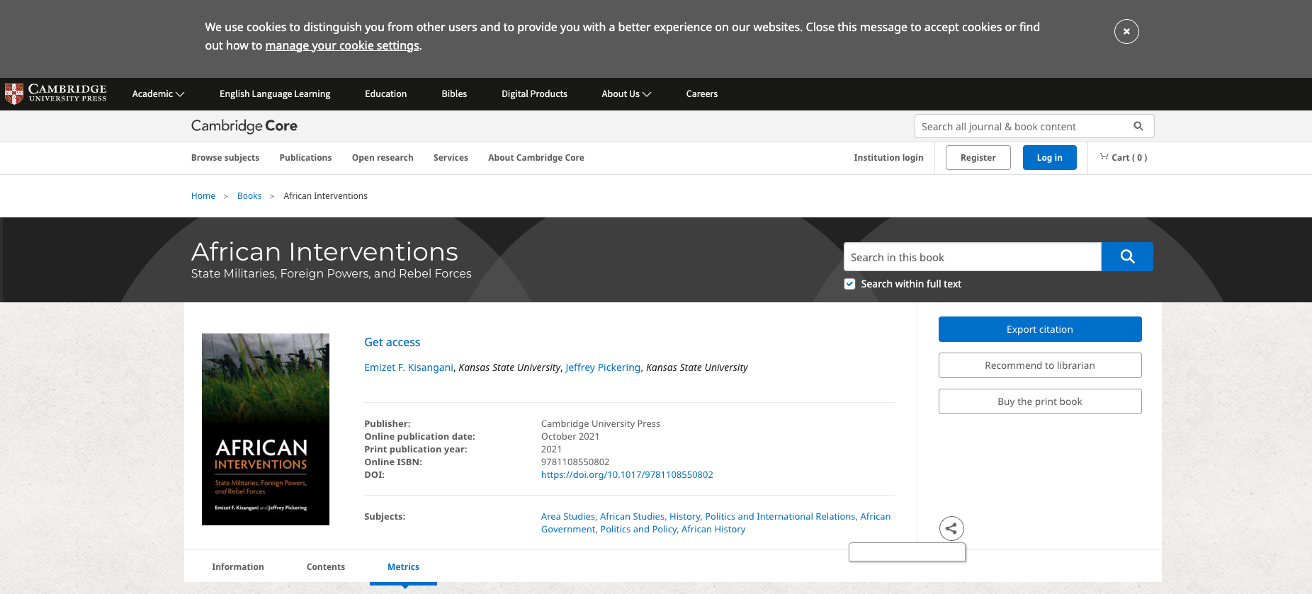 Website url: https://www.cambridge.org/core/books/african-interventions/9D51BF73D311B1465E31E5B16C0AB0D9