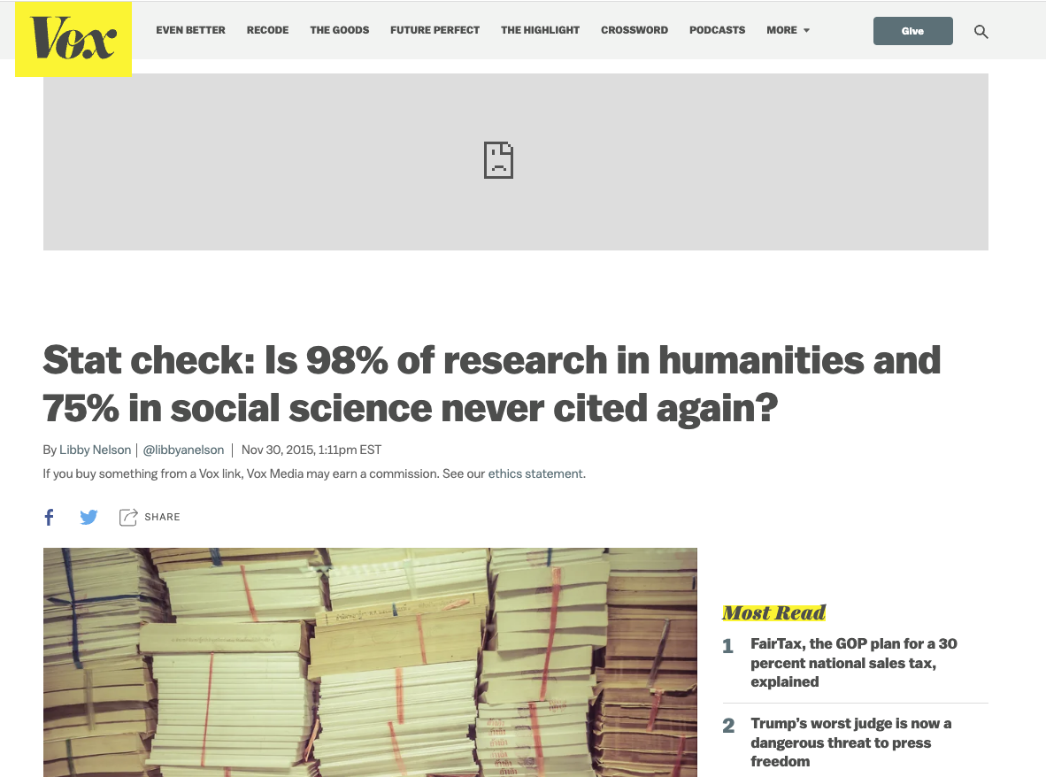 Website url: https://www.vox.com/2015/11/30/9820192/universities-uncited-research
