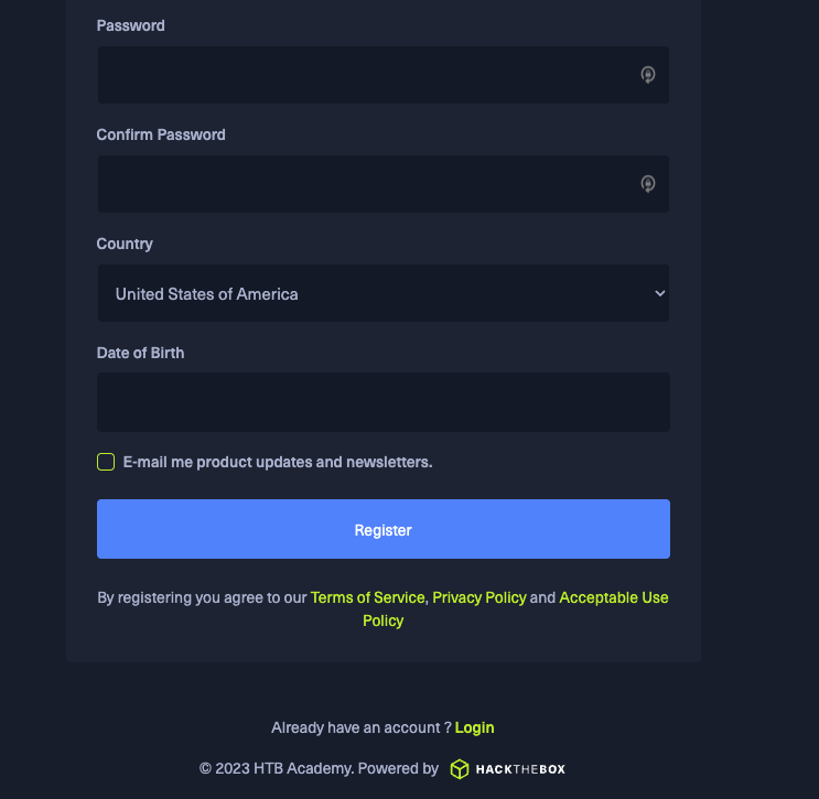 Website url: academy.hackthebox.com